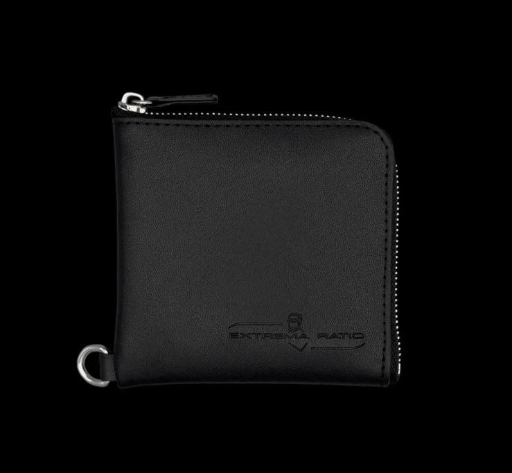 Portefeuille en cuir noir de style urbain avec une fermeture à glissière à trois côtés et un petit crochet pour attacher une lanière aux boucles de ceinture, empêchant la perte accidentelle ou le retrait indésirable. Conçu pour contenir tout ce dont vous avez besoin (cartes de crédit, billets de banque, etc.), c’est un accessoire construit pour durer aussi longtemps que les outils Extrema Ratio – un essentiel au quotidien.