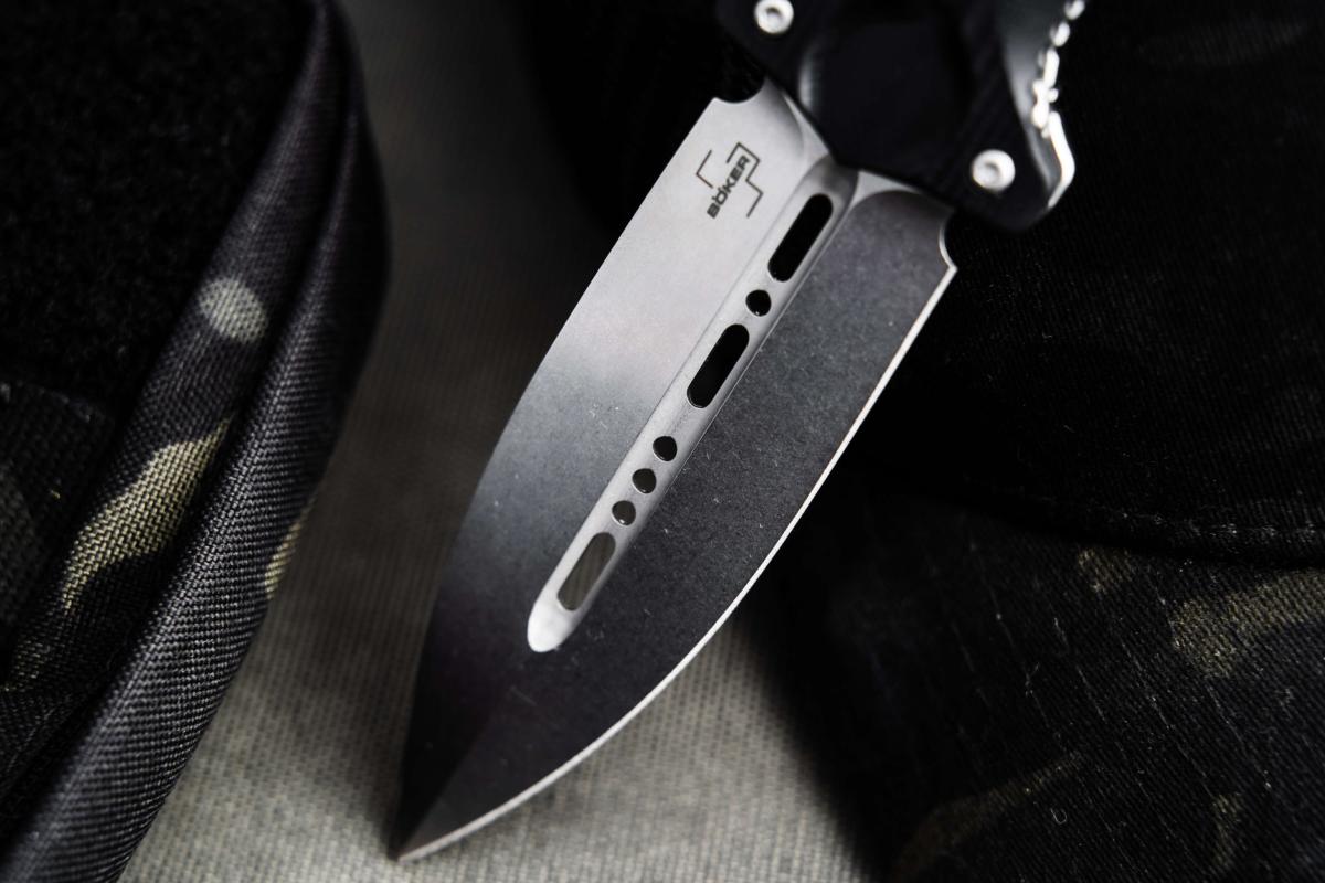 Le Boker Plus Cheus est un couteau massif avec une silhouette rappelant un poignard tactique.
