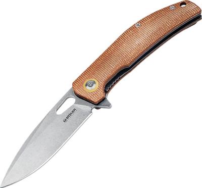 Un EDC à utiliser au quotidien avec sa lame à la finition délavée et son manche en Micarta, il se camoufle aisément.
