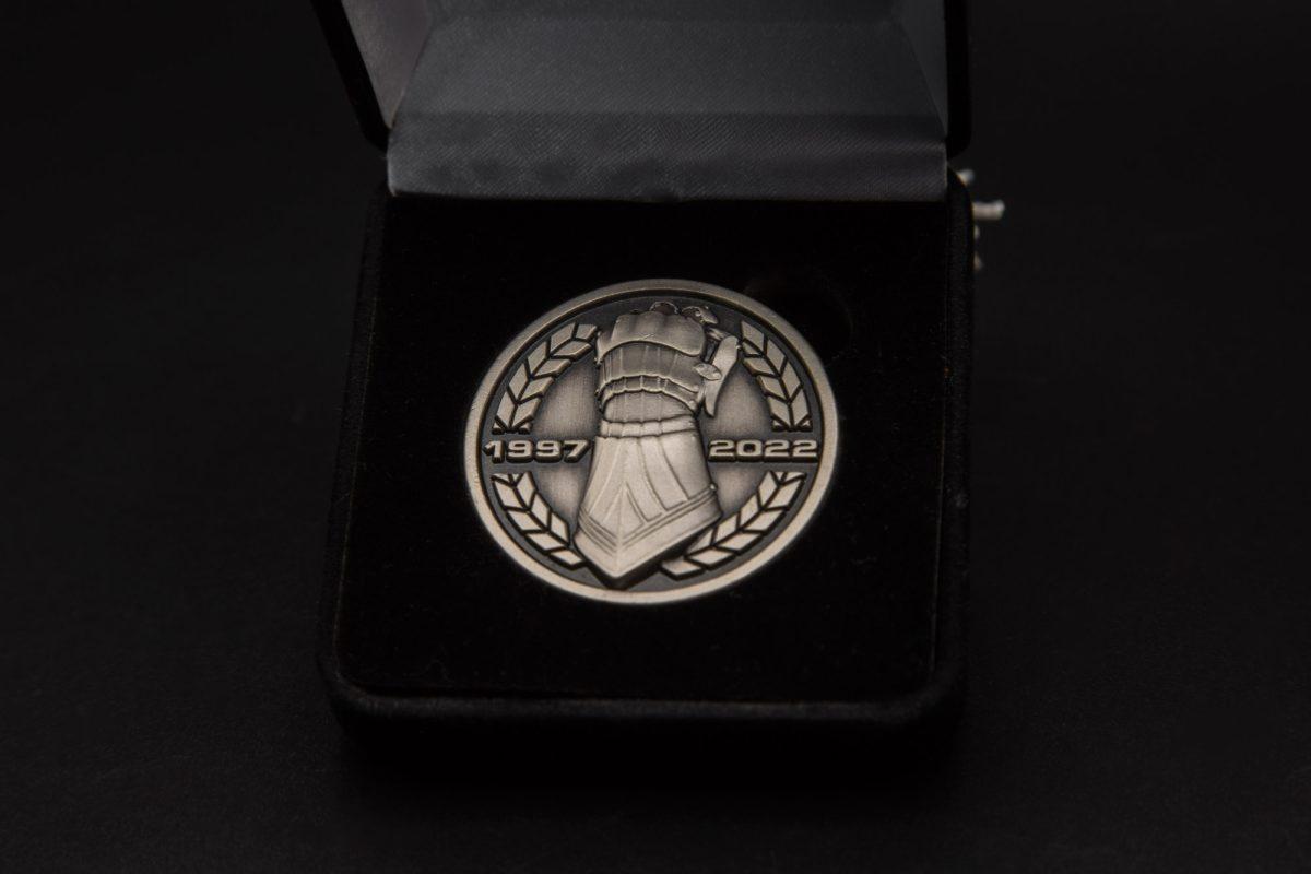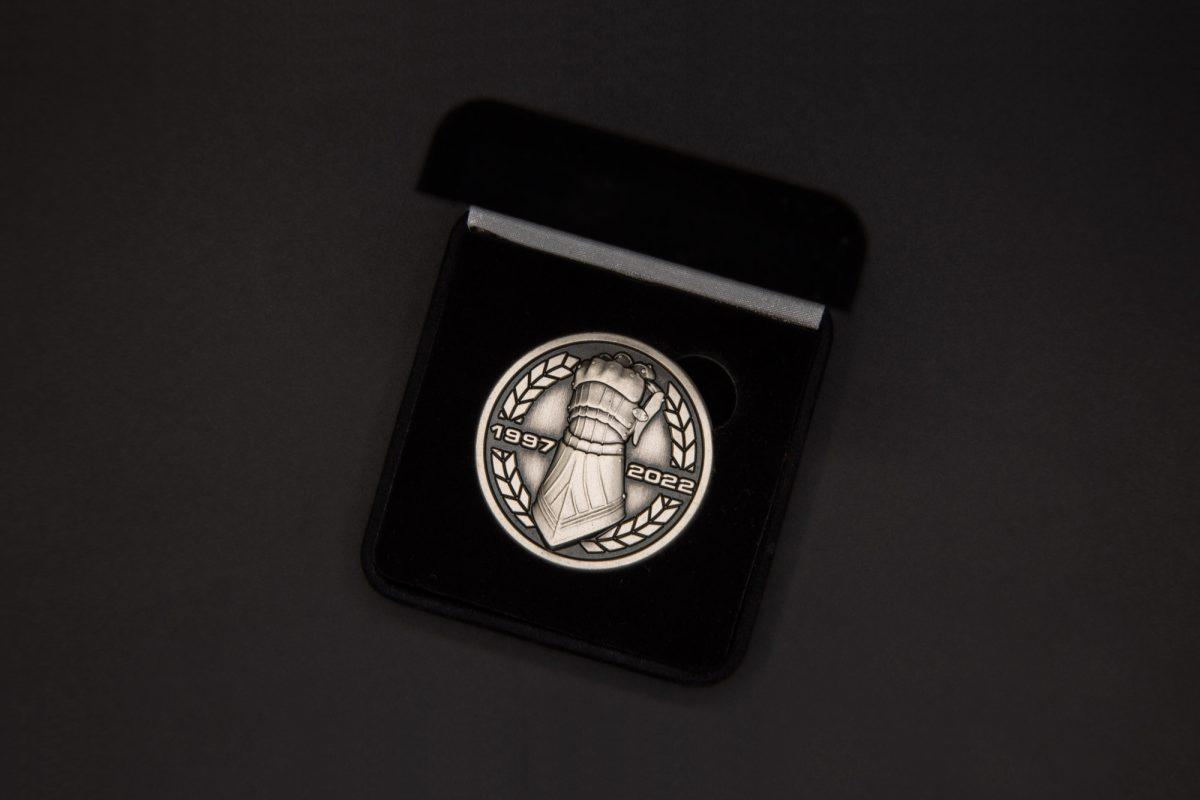 Les têtes de Coin XXV Anniversarium incluent l’emblématique gantelet Extrema Ratio flanqué de l’année de fondation (1997) et de la vingt-cinquième année d’activité de l’entreprise (2022). Les queues représentent le nouveau logo de l’entreprise, qui a été réinventé pour le vingt-cinquième anniversaire.