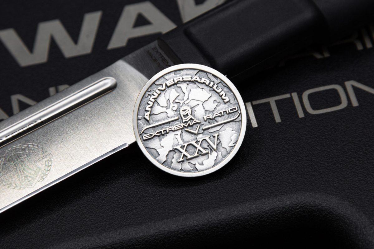 L'Extrema Ratio Coin XXV Anniversarium est une pièce commémorative frappée pour marquer le vingt-cinquième anniversaire de la marque. Il est en acier argenté, a un diamètre de 4 cm et pèse 38,5 g.