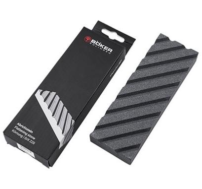 Une pierre à aplanir pour aplanir/redresser les pierres à aiguiser avec des rainures transversales pour absorber l'abrasion. Les pierres à aiguiser naturelles et synthétiques deviennent creuses sur la surface de travail au fil du temps lors de l'affûtage, ce qui entraîne une courbure vers l'intérieur. La pierre de dressage est utilisée pour produire ou maintenir une surface plane/droite.