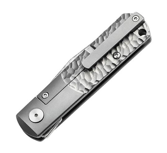 Le manche en titane présente une texture inspirée de la météorite et reprend les lignes classiques du Barlow traditionnel. Un renfort avant allongé se fond harmonieusement dans la texture irrégulière et cosmique de l'arrière. Son ergonomie exceptionnelle, associée à un verrouillage de type frame lock intégré et à un insert de verrouillage renforcé, garantit une sécurité et une fiabilité maximales.