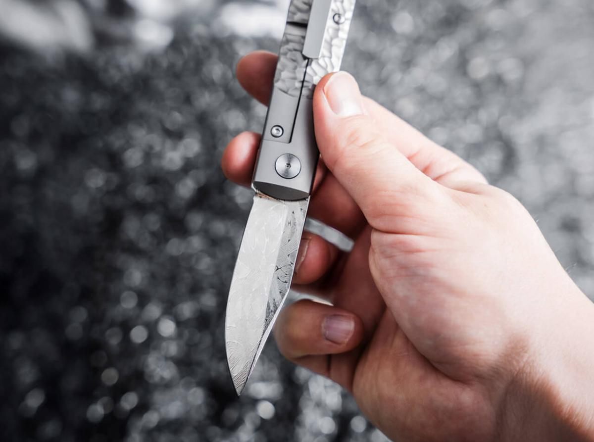 Du manche usiné avec précision à la lame en acier damassé de météorite, chaque détail est dédié à l'exclusivité et à la performance. La lame clip point est forgée à partir d'authentique météorite de fer et d'acier au carbone, puis transformée en un acier damassé unique par le célèbre coutelier Chad Nichols. Un revêtement en platine rehausse la profondeur visuelle du saisissant motif damassé en mosaïque, tout en offrant une résistance accrue à l'usure et à la corrosion. Le résultat : une lame aussi fonctionnelle qu'artistique.