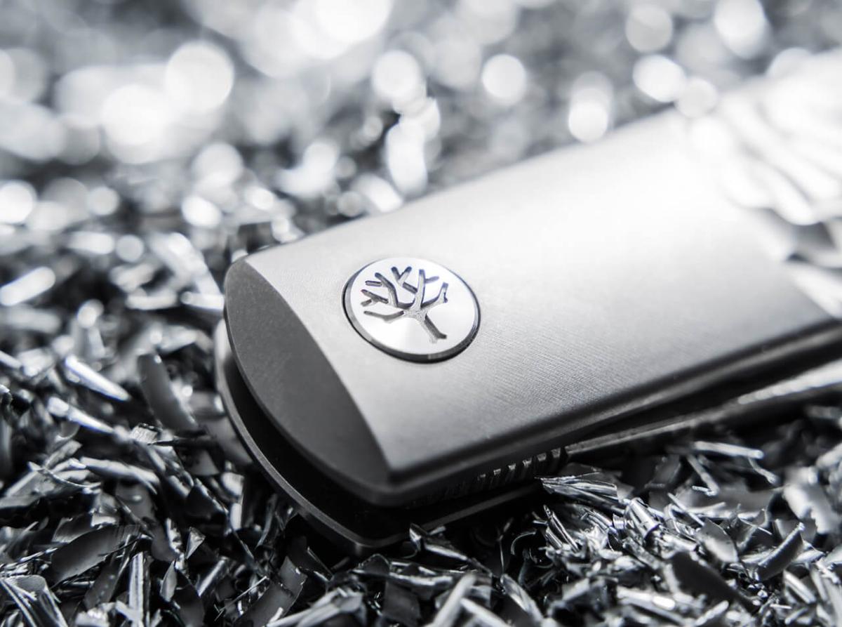 Un discret flipper disparaît complètement lorsque la lame est ouverte, tandis que le clip de poche en titane (port à droite, pointe vers le haut) assure un port sûr et élégant. Un trou pour lanière offre des options de port supplémentaires, et l'emblème Boker sur la vis de pivot apporte une touche finale raffinée.