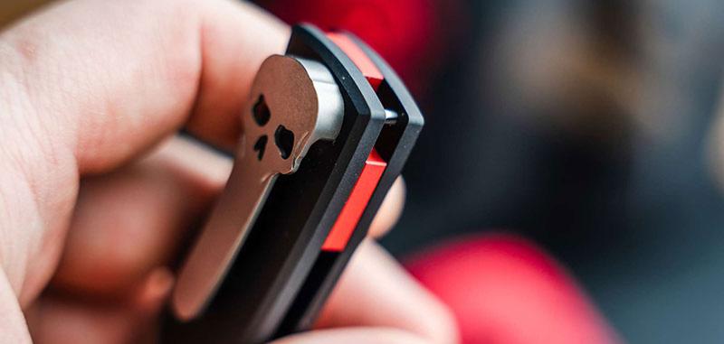 Des détails distinctifs, tels que le clip Chaves en titane représentant la Santa Muerte, divinité mexicaine, et l’entretoise rouge piment avec un trou pour lanière dissimulé, apportent une touche d’originalité et font de ce couteau une véritable pièce de caractère.