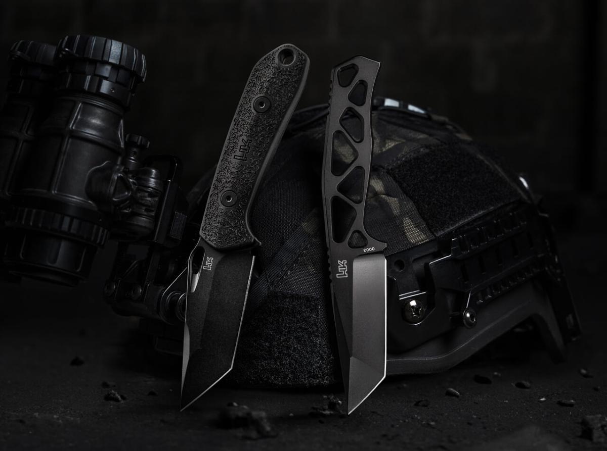 Le Heckler & Koch FX03 est doté d'une lame fixe et compacte qui répond aux exigences fonctionnelles d’un couteau militaire et de police moderne et est faite des meilleurs matériaux actuellement développés pour son usage. La lame Tanto est faite d'acier MagnaCut et est recouverte de noir pour protéger contre les reflets. La poignée décalée et le protège-pouce offrent une sécurité maximale et un transfert de puissance vers le tranchant. Les plaquettes boulonnées en nylon indestructible renforcé de fibres (FRN) sont fournies avec la texture actuelle HK pour une adhérence optimale. La gaine Kydex pliée en une seule pièce plate et mince offre une prise ferme et sécurisée avec un accès rapide même sans verrou de sécurité supplémentaire. Avec le clip en acier à ressort inclus, la gaine peut être portée sur le harnais dans la poche de vêtement ou dans la ceinture intérieure. Les œillets permettent également d’installer d’autres adaptateurs de fixation courants (Tek-Lok, boucle de ceinture IWB, etc.).