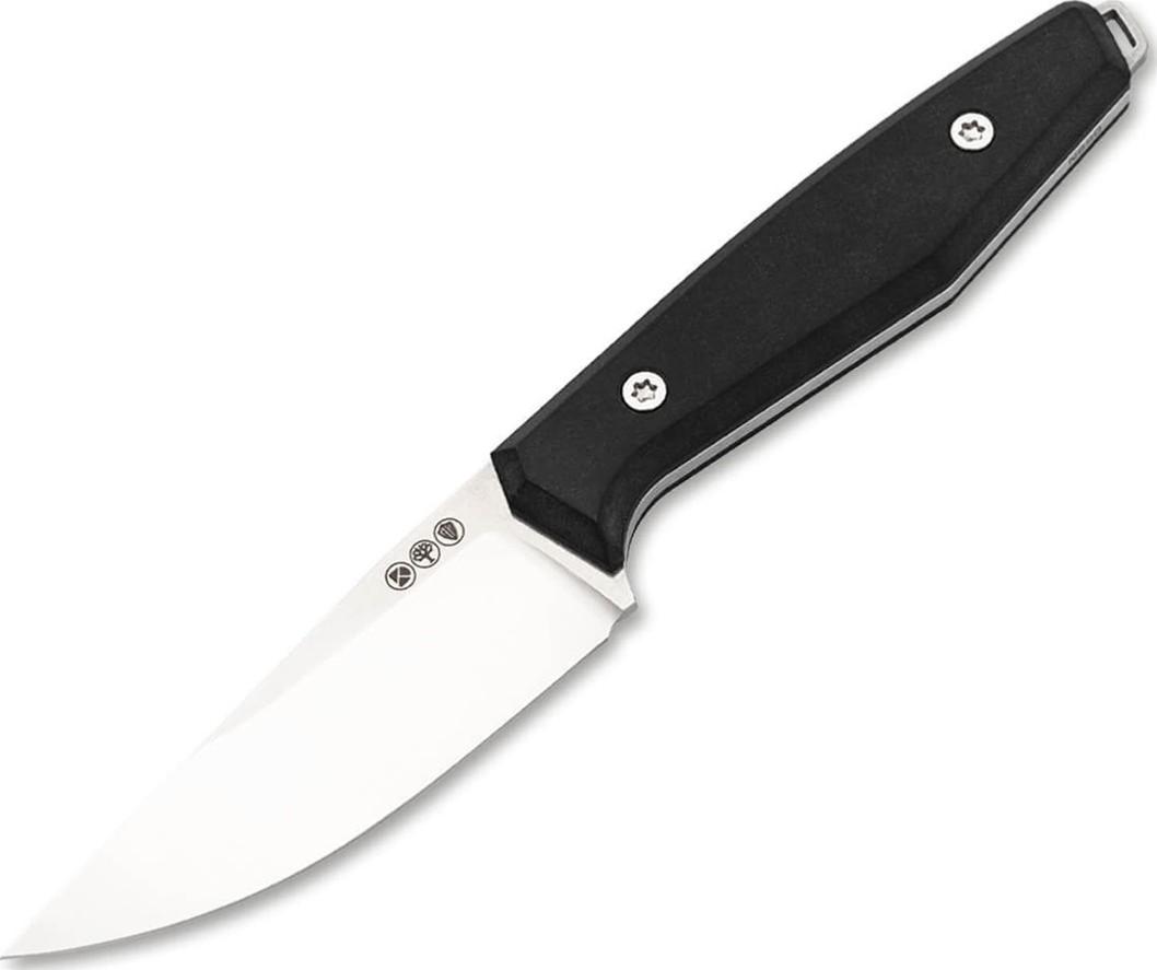 Les plaquettes de manche en Richlite noir confèrent au couteau une allure moderne et technique, tout en offrant une excellente durabilité et une prise en main confortable. Le Richlite est extrêmement résistant à l'humidité et aux variations de température, ce qui le rend parfaitement adapté à un usage quotidien. Sa forme ergonomique assure une prise en main sûre et un contrôle précis.
