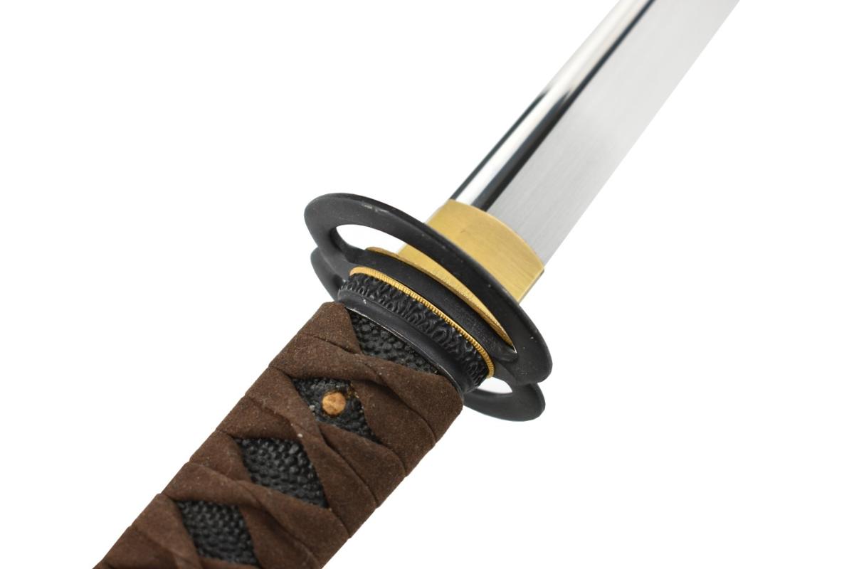 Le tressage de la tsuka est en cuir synthétique et les menukis sont dorés à l'or fin.