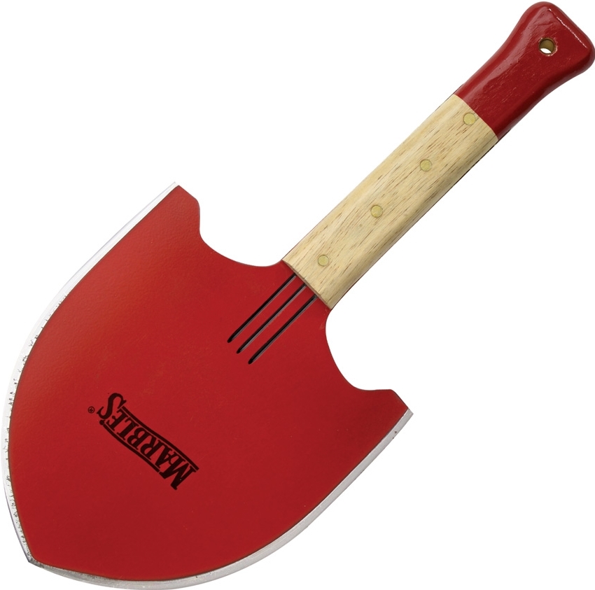 Manche bois avec embout rouge, pelle en acier peint en rouge, longueur totale 46,3 cm