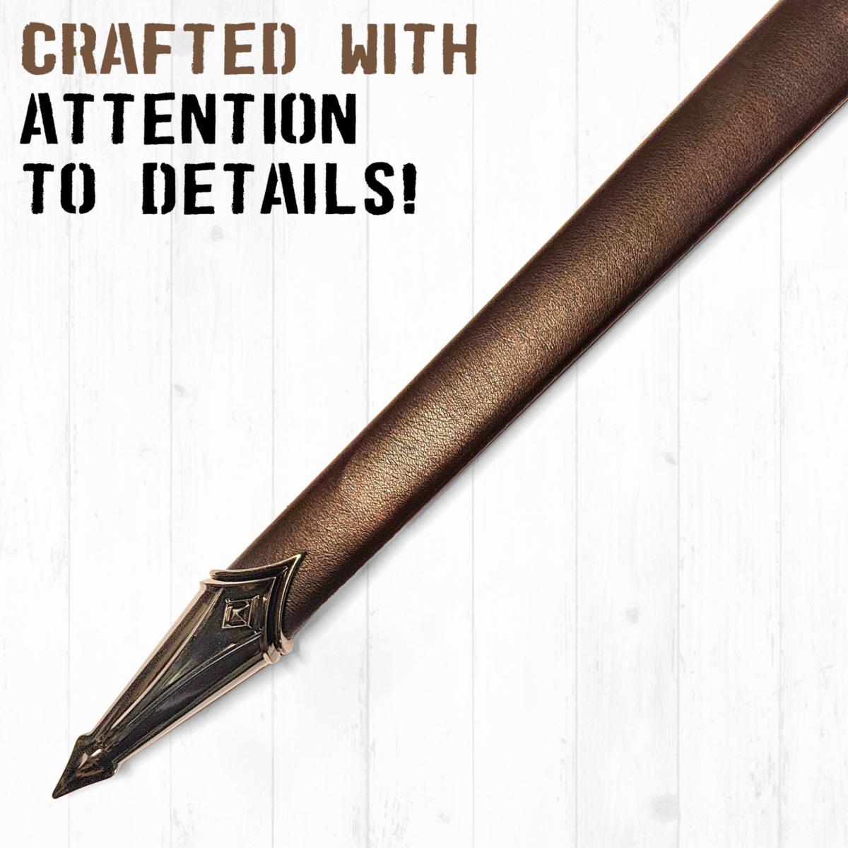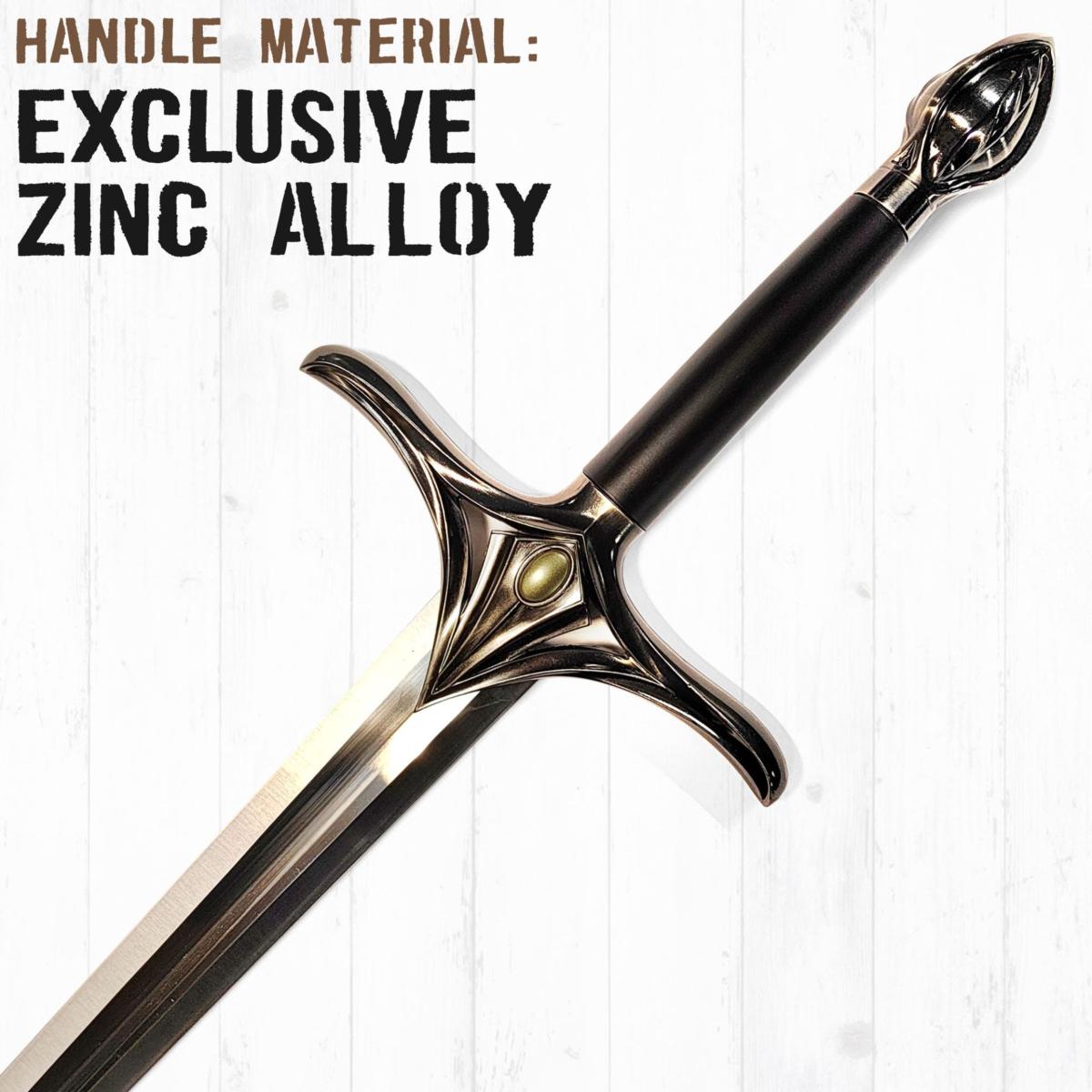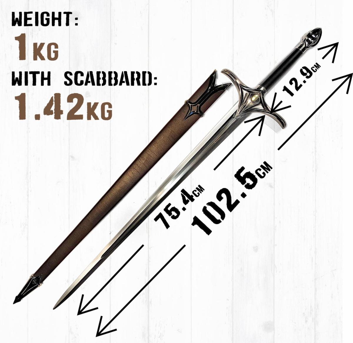 L’épée Galadriel rend hommage à la puissance et à la beauté de cette légendaire reine des elfes. Fabriqué à partir de matériaux de haute qualité, il combine grâce et force dans un seul morceau à couper le souffle de l’artisanat. Chaque ligne finement travaillée sur la poignée raconte une histoire d’enchantement elfique et d’élégance intemporelle. Accompagnée d’un fourreau en cuir exquis, cette épée est non seulement un chef-d’œuvre de la forge mais aussi une pièce maîtresse pour les collectionneurs et amateurs d’art.
