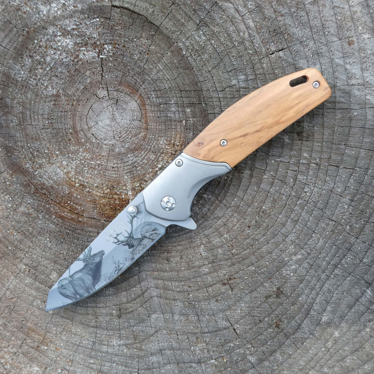 HE55009 - Couteau HERBERTZ Olivier 11,5 cm Inox Décor Cerfs