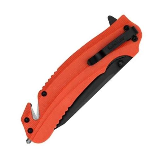 Le KERSHAW Barricade – Serrated est conçu pour les urgences et sauvetages. La lame partiellement dentée est prête à scier à travers une corde, des sangles et plus encore, tandis que le brise vitre au carbure et le coupe-câble intégré sont prêts pour les situations critiques. La poignée en nylon rempli de verre orange vif assure une visibilité pour un accès instantané. L’ouverture assistée permet un déploiement rapide d’une seule main.