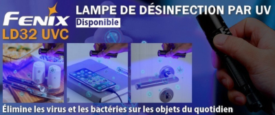 Fenix a conçu une lampe avec une fonction de désinfection par rayonnement UVC, qui peut s'avérer très utile dans les circonstances sanitaires actuelles. Son faisceau UVC ultraviolet de haute puissance peut désinfecter les bactéries et les virus en seulement 30 secondes. Alimentée par une batterie 18650, la lampe LD32 UVC émet une puissance maximale de 1200 lumens, avec une portée de 170 mètres.