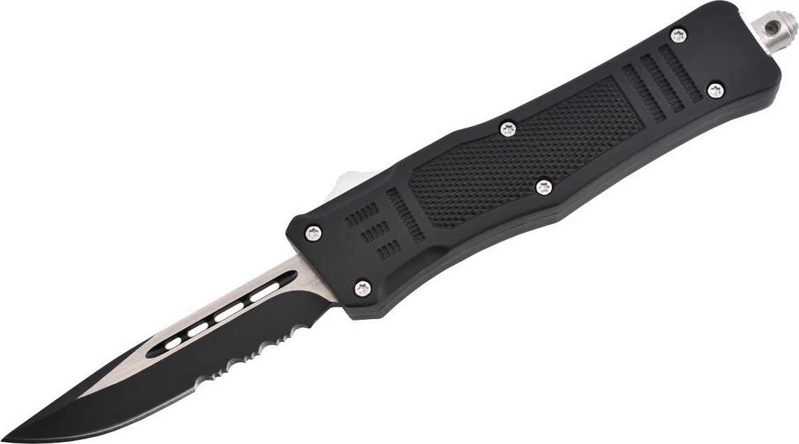 Couteau automatique, lame à simple tranchant, double action.