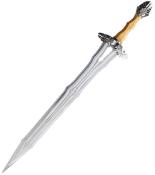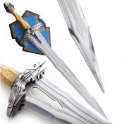 Voici la reproduction de l'épée royale de Thorin vue dans le Hobbit "La Bataille des Cinq Armées". L'épée a une lame en acier inoxydable 440 avec une gravure sur tout le long. Elle est livrée avec un support mural richement décoré. Magnifique épée de collection.