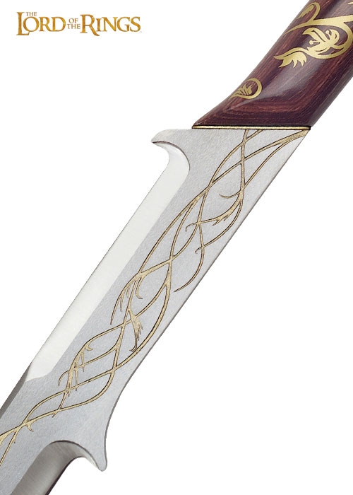 Les inscriptions sur la lame dans la langue Elfique signifient : "cette lame s'appelle Hadhafang, une défense noble contre les ennemis pour une dame noble."