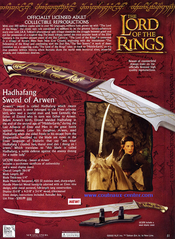 UC1298 - Hadhafang, l'épée d'Arwen ( UNITED CUTLERY ) Le Seigneur Des Anneaux