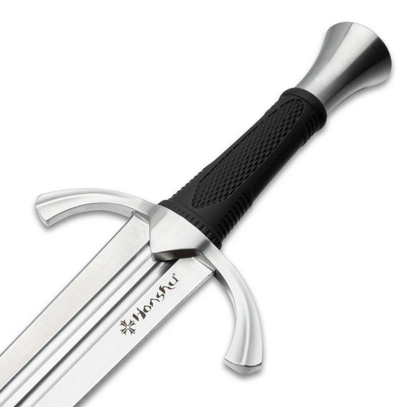 La dague médiévale de Honshu Ref. UC3655, est une arme impressionnante, à la fois fonctionnelle et esthétique. Fabriqué avec précision et passion, ce poignard mesure un impressionnant 49 cm, ce qui en fait une véritable œuvre d’art et un ajout exceptionnel à toute collection. Le poignard médiéval Honshu a une lame en acier inoxydable 7Cr13 qui est non seulement tranchante, mais aussi résistante à la corrosion, assurant ainsi la longévité et la performance. La poignée texturée noire offre une prise sûre, ce qui rend cette dague facile à manipuler et à contrôler. Le pommeau du poignard médiéval de Honshu est en acier inoxydable 2Cr13, ce qui contribue à sa durabilité générale et augmente son attrait visuel. Protégez votre dague avec le fourreau en cuir noir fourni. La fermeture en métal enduit noir sur le fourreau garantit que votre poignard reste bien en place, de sorte que vous pouvez le porter partout où vos aventures vous mènent.